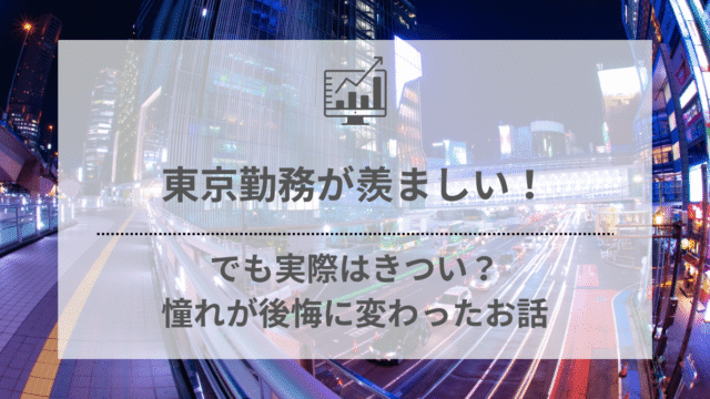 仕事の悩み 東京勤務が羨ましいと思ってたけど…実際はきつい!憧れが後悔に変わったお話 2025年11月7日 おきらく店長 https://www.managers-ally.com/wp-content/uploads/2024/12/IMG_2526.png おきらく店長 「毎日がイベントになりそう」 「東京で働けば“できる人”になれそう」 「キラキラした人たちの仲間入りできるかも」 このよ …